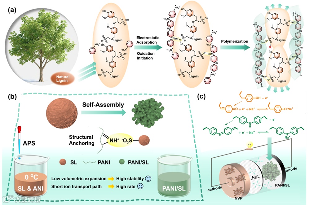 木质素磺酸盐分子锚定聚苯胺用于高性能钠离子电池负极
