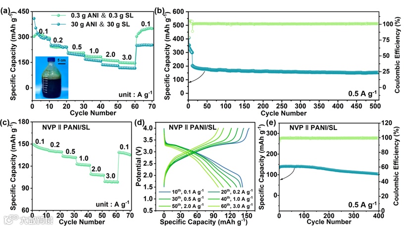 要点三 半电池测试PANI/SL负极的高容量快充潜力