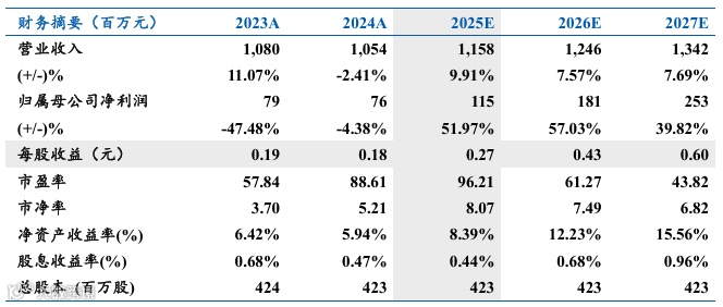 考虑到公司核级锆出货节奏,我们调整公司盈利预测,预计2025-2027年公司实现归母净利润1.15/1.79/2.52亿元,对应PE为95.77X/61.50X/43.73X,维持“增持”评级。