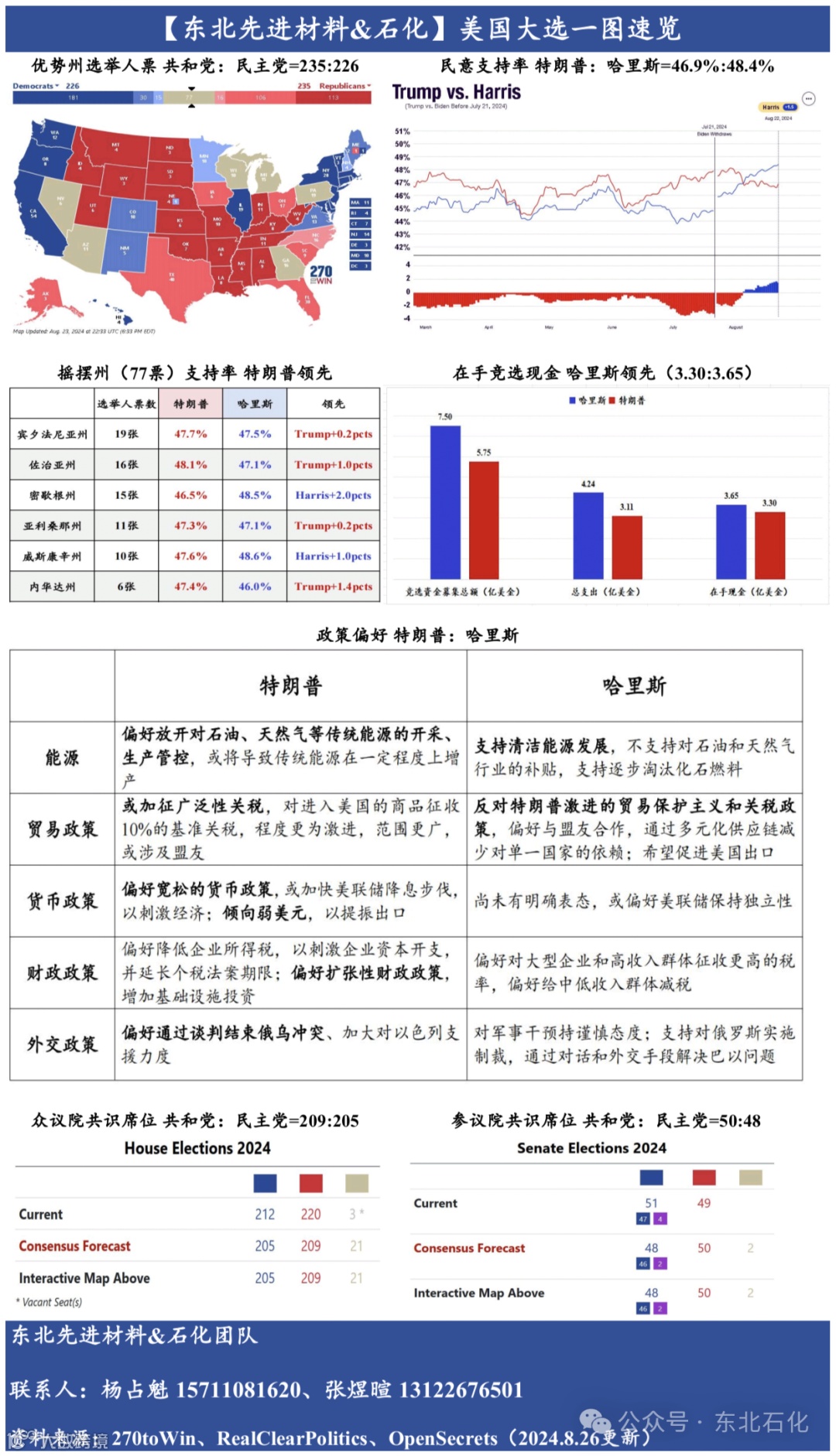 优势州选举人票:据270 to Win,截至8月26日,共和党:民主党=235:226;