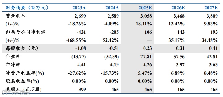 考虑到公司PCB和化学试剂业务稳定发力,锂电池业务有望扭亏,同时积极布局硫化锂固态电池,我们预计2025-2027年公司实现归母净利润1.06/1.43/1.93亿元,对应PE为77.81X/57.56X/42.81X,首次覆盖,予以“增持”评级。