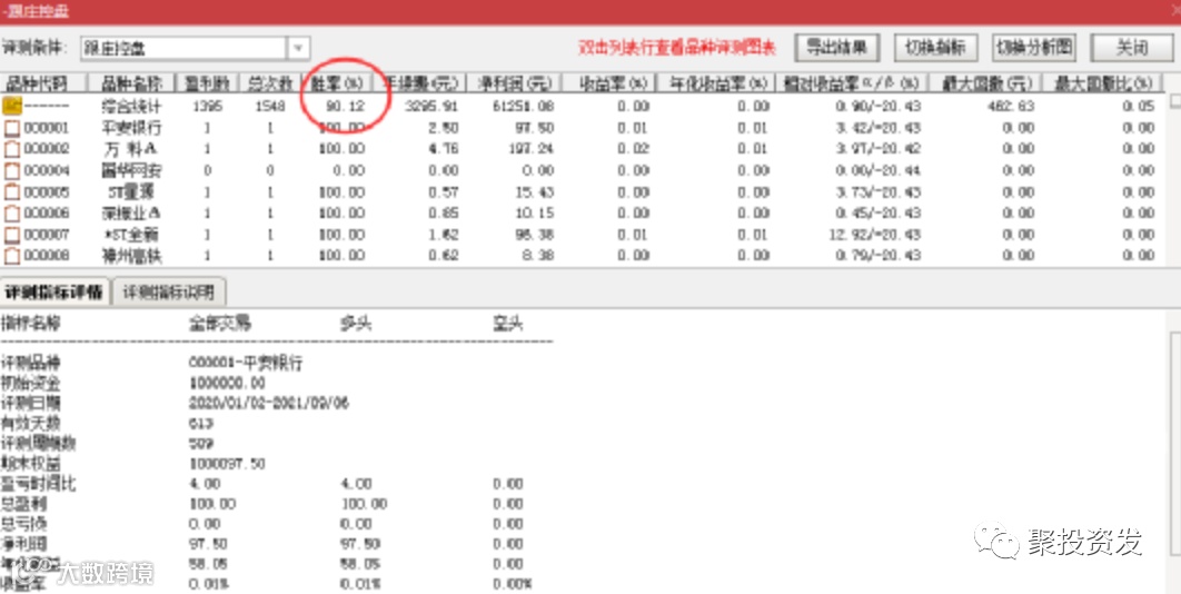 B、其次是中长线模式,该指标测评周期10周期,设置10%止盈止损收盘价开仓和平仓,仍然有接近90%胜率,因此,可以做短望长,也就是喜欢中长线的朋友,也可以持股10周期,胜率不会太大变化。也可以在10周期内来回做T,到周期结束再全部平仓出局。
