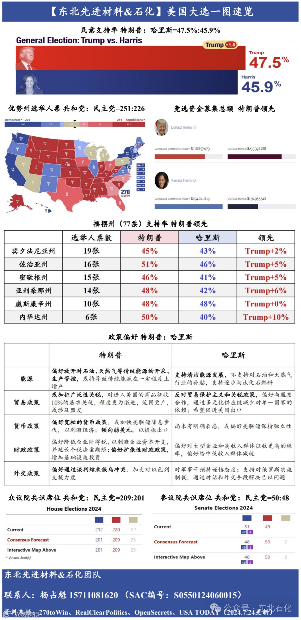 但据Real Clear Politics网站统计,截至2024年7月24日,特朗普的整体民意调查支持率或仍领先哈里斯约1.6pcts。