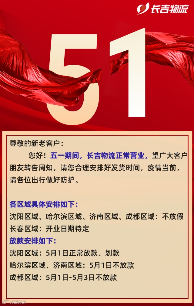 五一期间长吉物流正常营业