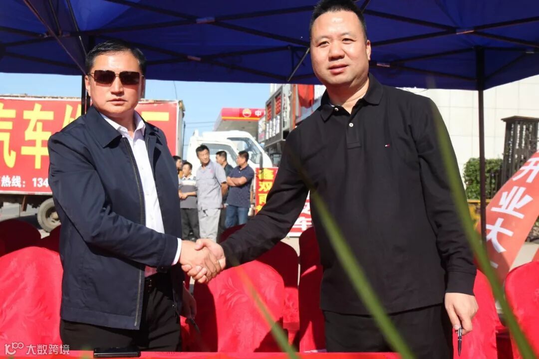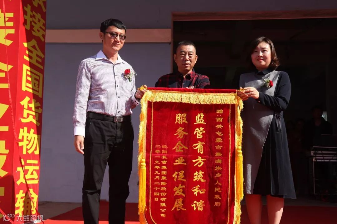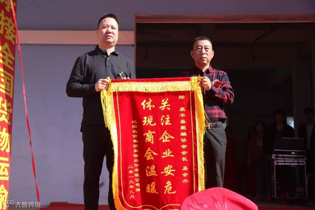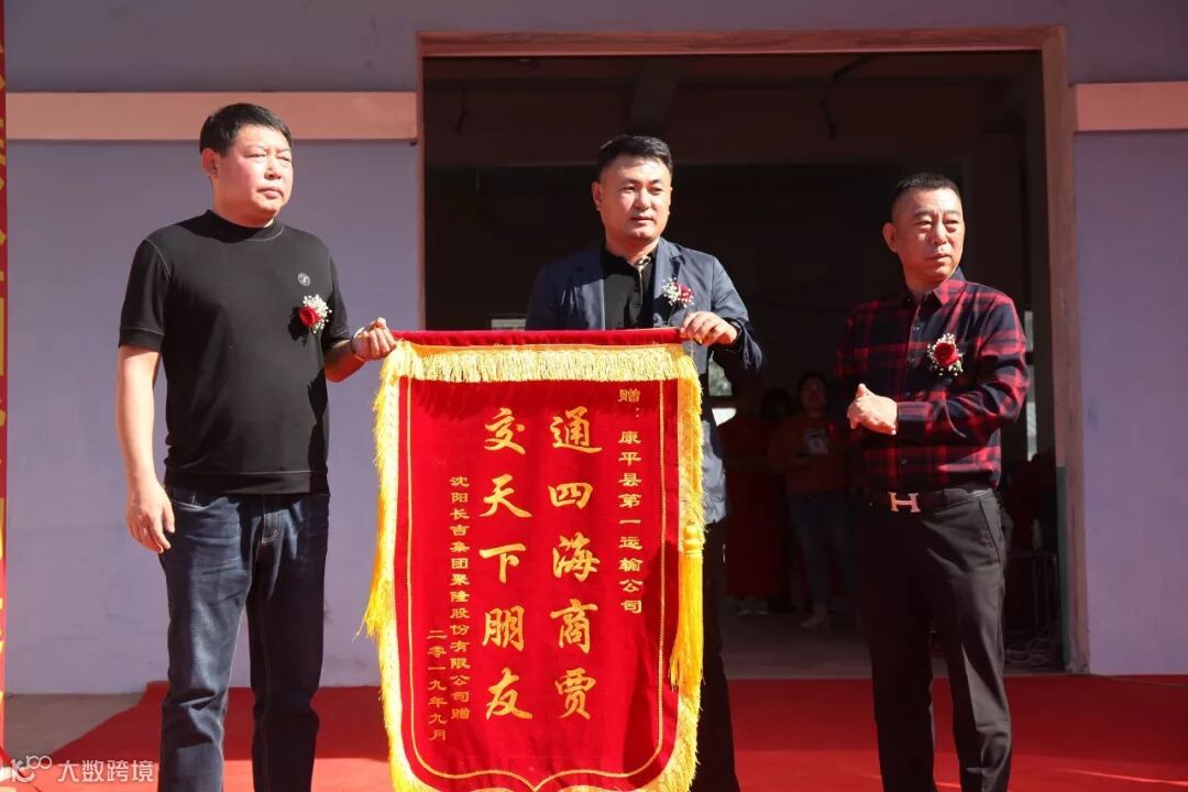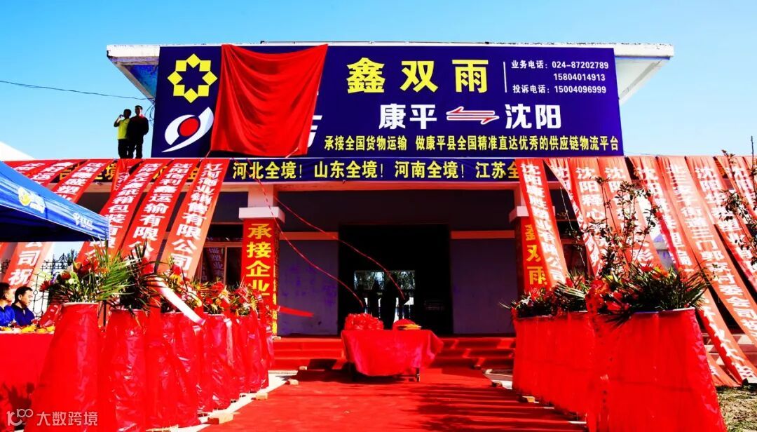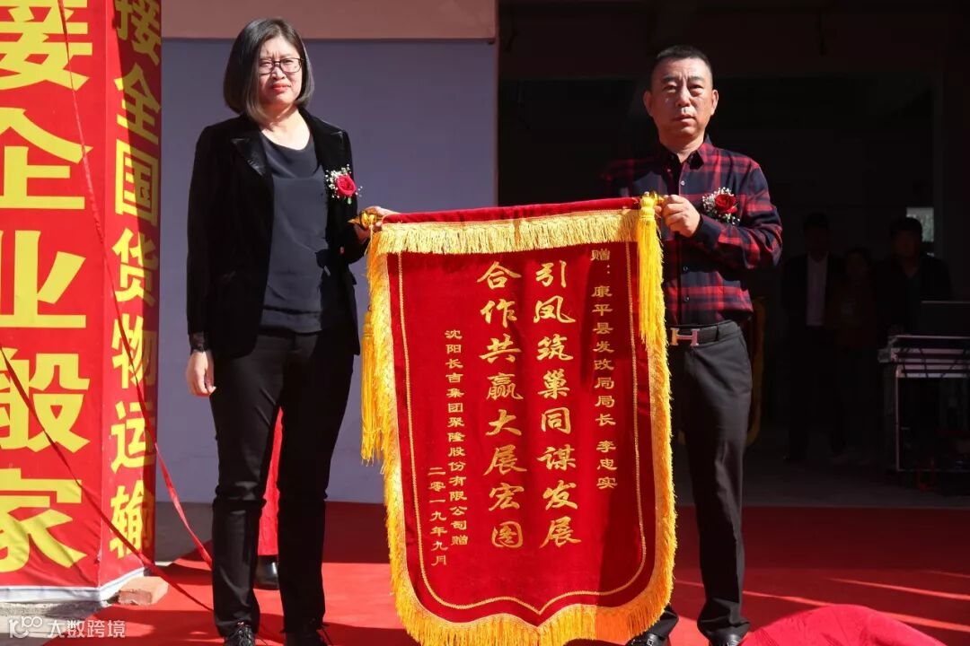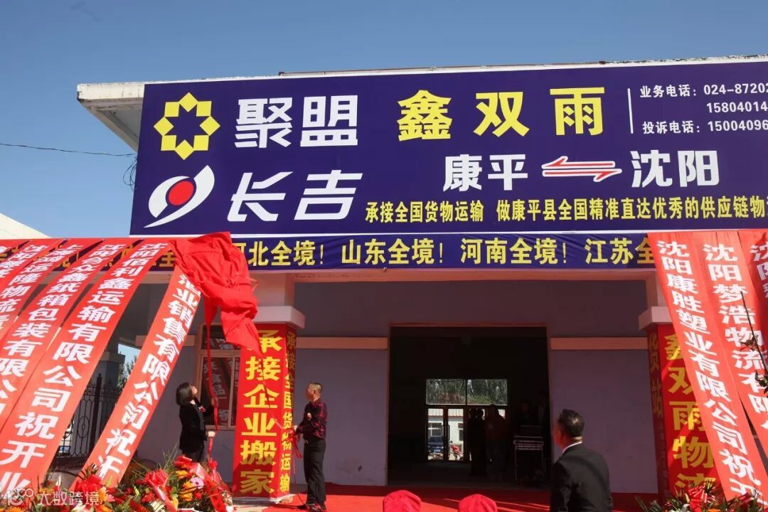 由康平县发改局副局长张伟和沈阳长吉聚隆股份有限公司经理马忠俭,为沈阳长吉聚隆康平鑫双雨物流分拨中心营业部揭牌。