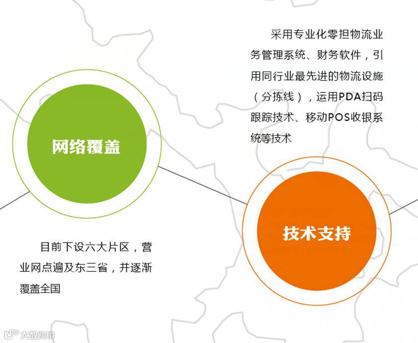 目前物流公司近700家营业网点,各类运输车辆3000余辆、仓储面积达100000平方米左右,员工5000余人,辐射范围可达全国。