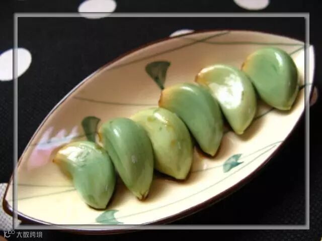 顾名思义,就是在阴历腊月初八的这天来泡制蒜。其材料非常简单,就是醋和大蒜瓣儿,做法也极其简单,将剥了皮的蒜瓣儿放到一个可以密封的罐子或者瓶子之类的容器里面,然后倒入醋,封上口,放到一个冷的地方。慢慢地,泡在醋中的蒜就会变绿,最后会变得通体碧绿,如同翡翠碧玉。