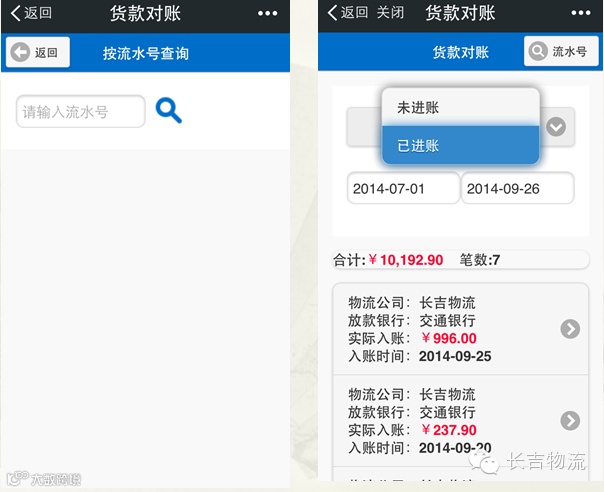 货款对账:货款对账可查询未进账和已进账数据信息(包括进账时间、总手续费、总进账金额、总票数、分票手续费、分票进账金额等详细信息)。