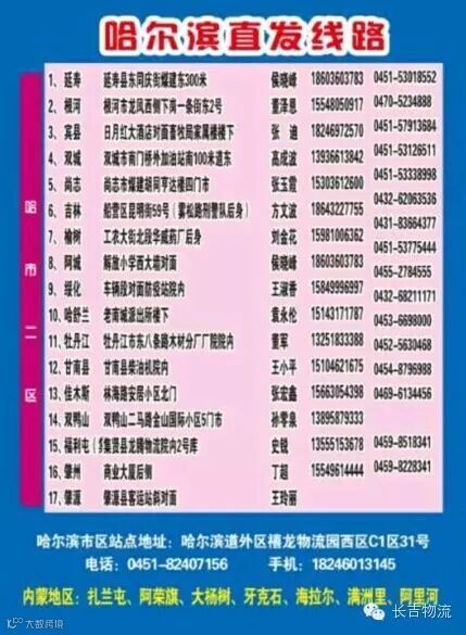 2015年2月26日长吉济南区域开通至哈尔滨全境专线及内蒙北部地区一票到底!