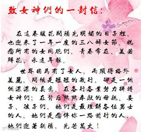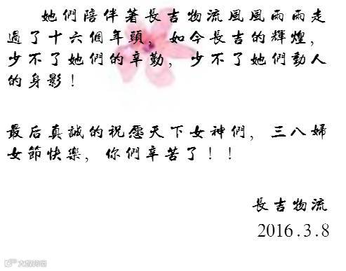 导读:女神节Happy Women`s Day 长吉物流致女神们的一封信: 在这春暖
