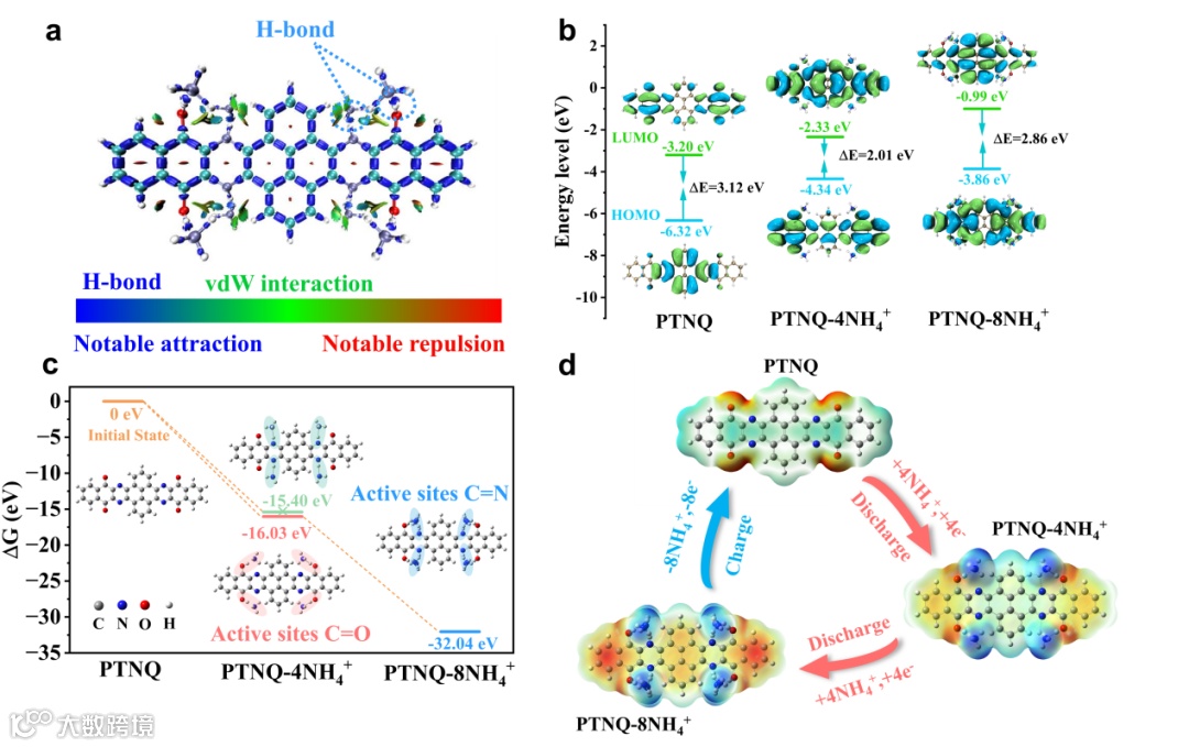 图4. DFT计算的PTNQ的储铵机理