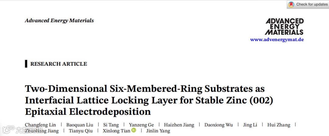 二维六元环基底作为稳定Zn(002)外延电沉积的界面晶格锁定层