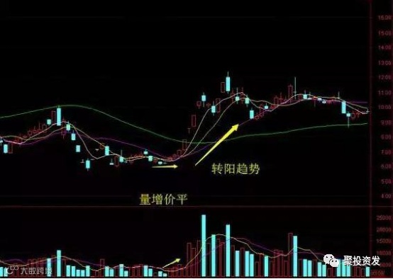 股票成交量持续增加,股价趋势也转为上升,这是短中线最佳的买入信号。“量增价升”是最常见的多头主动进攻模式,应积极进场买入与庄共舞。