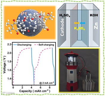 有机正极可以和锌负极结合来构建水系可充电电池。有机正极一般是基于就有氧化还原反应活性的芳香族有机分子,其氨基或羰基为储存电荷的活性位点。一个有趣的现象是许多有机正极在放电后可以借助空气氧化而实现自充电,由此可以构建自充电水系锌-有机电池。然而,该自充电功能在在迈向实际应用的道路上仍有诸多不足。一是依赖O2氧化,电池没法全密封,存在着电解液蒸发、操作复杂等问题;二是水系电池的电压较低;三是自充电-放电循环次数有限,归因于正极表面的复杂锌盐副产物(如碱式硫酸锌)的积聚,导致电池依靠重复自充电累积对方释放能量不足。针对上述热力学与动力学的双重局限,亟需开发全新的系统级策略,以实现在全密封条件下根除正极表面副产物、突破电压窗口并大幅提升电池的综合储能表现。