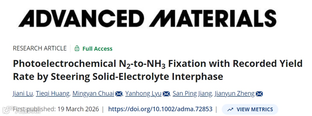 调控固态电解质界面实现创纪录光电化学固氮产率