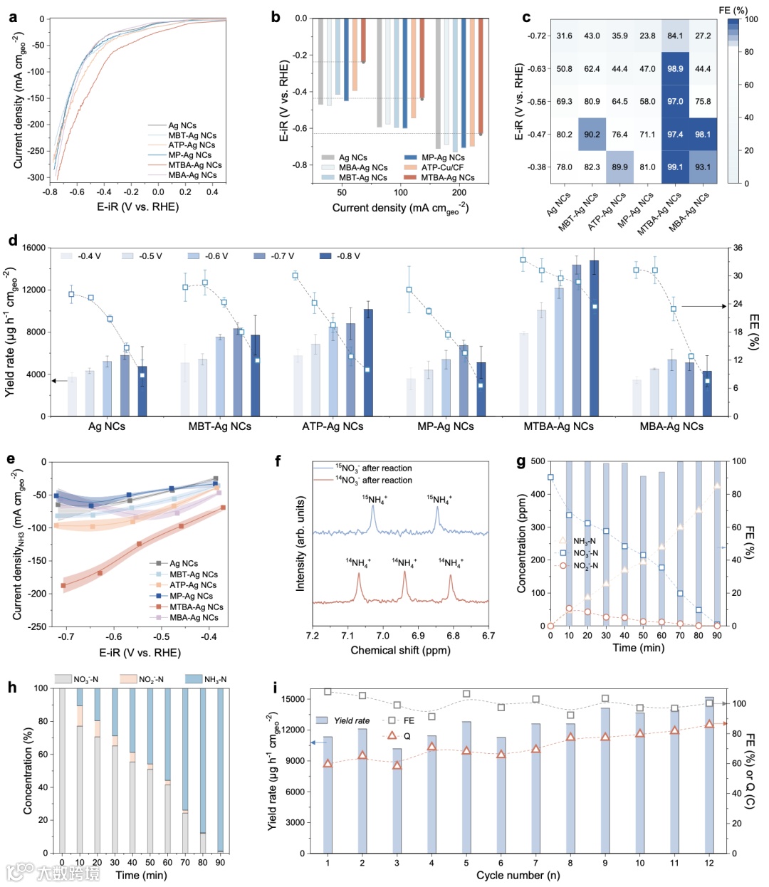 •MTBA-Ag NCs:NH₃法拉第效率 98.9%