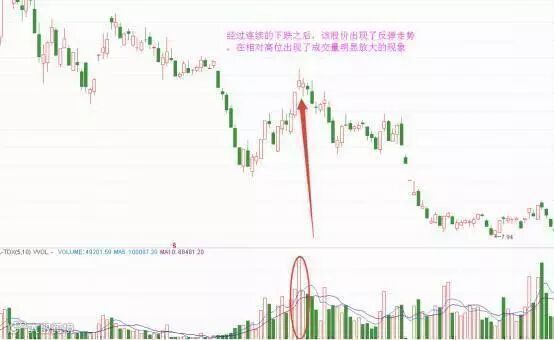 (1)在下跌趋势形成后,主力资金首要的任务是逢高派发。当成交量突然放大时,意味着众多买盘集中入场,而机构正好趁机抓住时机大举出货。