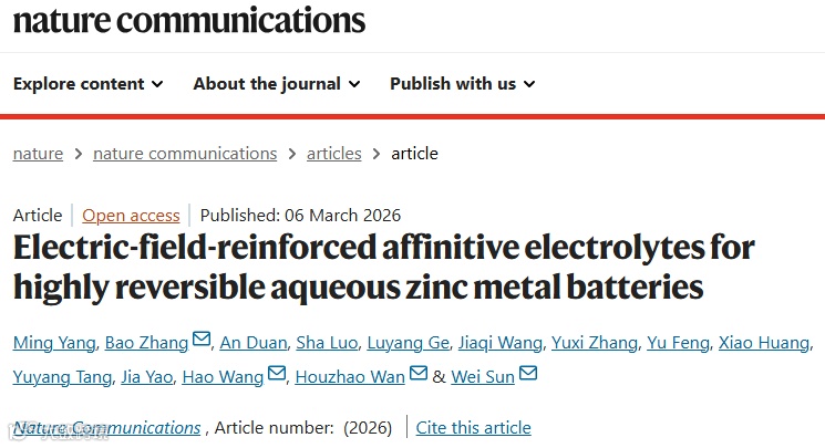 Yang, M., Zhang, B., Duan, A. et al. Electric-field-reinforced affinitive electrolytes for highly reversible aqueous zinc metal batteries. Nat Commun (2026).