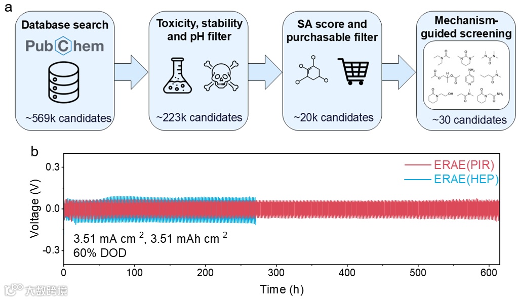 进一步地,研究团队将该 DN-μ 双参数设计理念拓展至高通量计算。从约56.9万种有机分子数据库中,成功筛选并实验验证了吡拉西坦(PIR)等新型优异添加剂。这证明了该理论框架的高普适性,为未来水系多价金属电池的界面工程提供了数据驱动的实用策略。