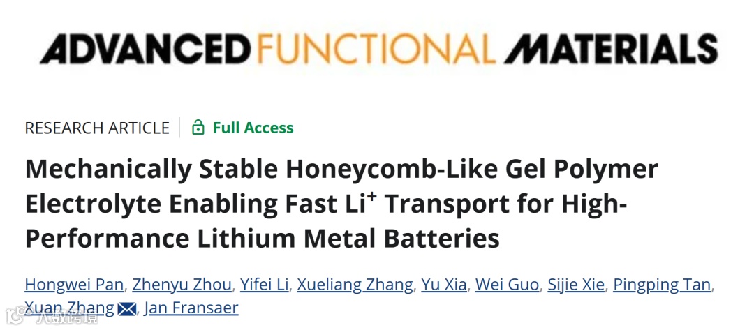 具有高机械稳定性的蜂窝状凝胶聚合物电解质助力高性能金属锂电池快速Li+传输