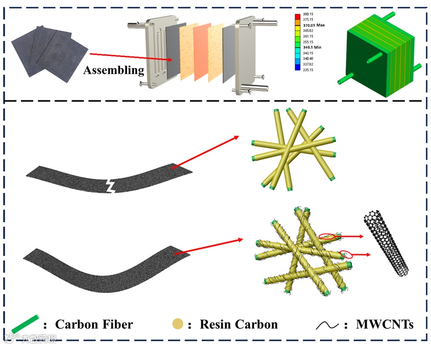 基于 MWCNTs-CFs 分层结构的高强度双热电导性燃料电池用改性碳纸