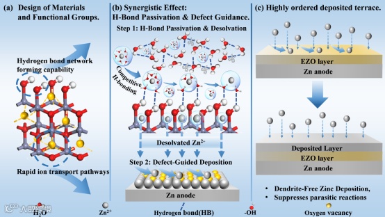图1. 氢键钝化-氧空位导锌协同机制。