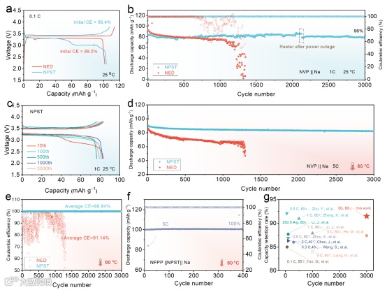 图4. NPST 电解液在钠离子电池中的性能表现。