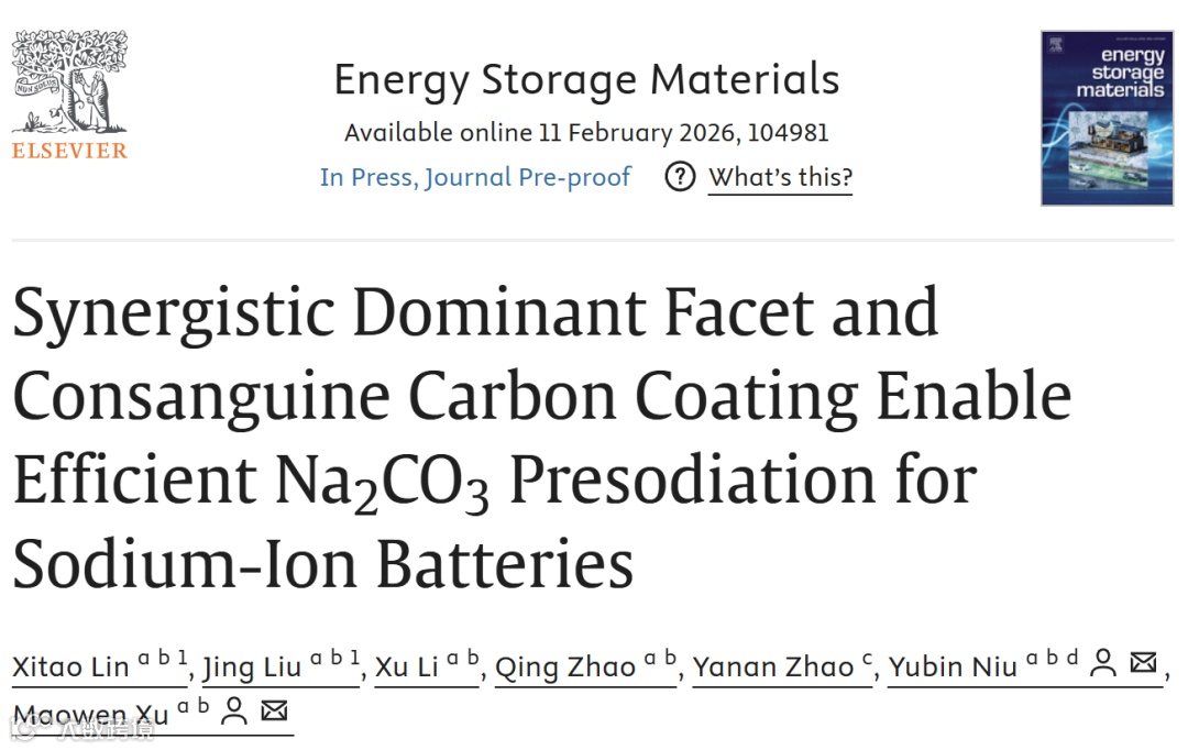 协同优势晶面与同源碳包覆实现高效Na2CO3预钠化用于钠离子电池