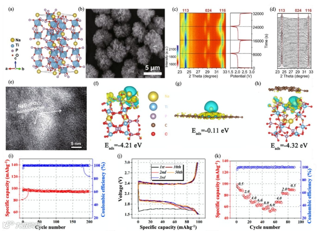 图8 钛基磷酸盐正极结构与介观结构界面的相互作用及其对电化学长期和低温性能的影响。