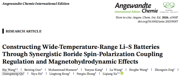 Constructing Wide-Temperature-Range Li-S Batteries Through Synergistic Boride Spin-Polarization Coupling Regulation and Magnetohydrodynamic Effects, Angew. Chem. Int. Ed., 2026, e19187;