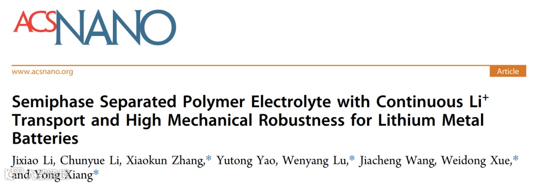 用于锂金属电池的具有连续Li+传输和高机械强度的半相分离聚合物电解质