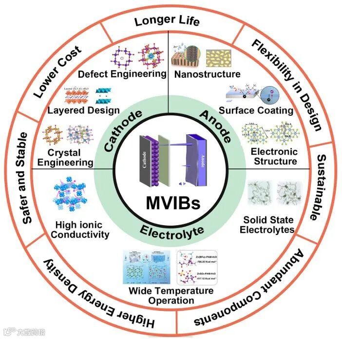 电池市场目前主要由锂电池技术主导,但由于锂金属储量低、成本高,锂电池面临着严峻的挑战。鉴于此,以多价金属离子(例如Zn²⁺、Mg²⁺、Ca²⁺、Al³⁺等)为核心的多价金属离子电池作为传统锂离子电池(Li-ion batteries)的替代方案,受到了广泛关注。这主要得益于多价金属的高储量、低成本、高安全性以及更高的体积容量。然而,由于多价金属离子具有更高的电荷密度和更慢的动力学特性,以及电极材料的结构不稳定性、界面电阻等问题,这些电池体系的成功应用需要对电极和电解液的化学性质进行精细控制。有鉴于此,悉尼科技大学汪国秀,北京理工大学孙克宁教授合作系统总结了多价金属离子电池的电极、电解液材料以及隔膜的最新进展,重点阐述了多价金属离子电池在成本、能量密度和安全性方面超越锂离子电池的潜力。