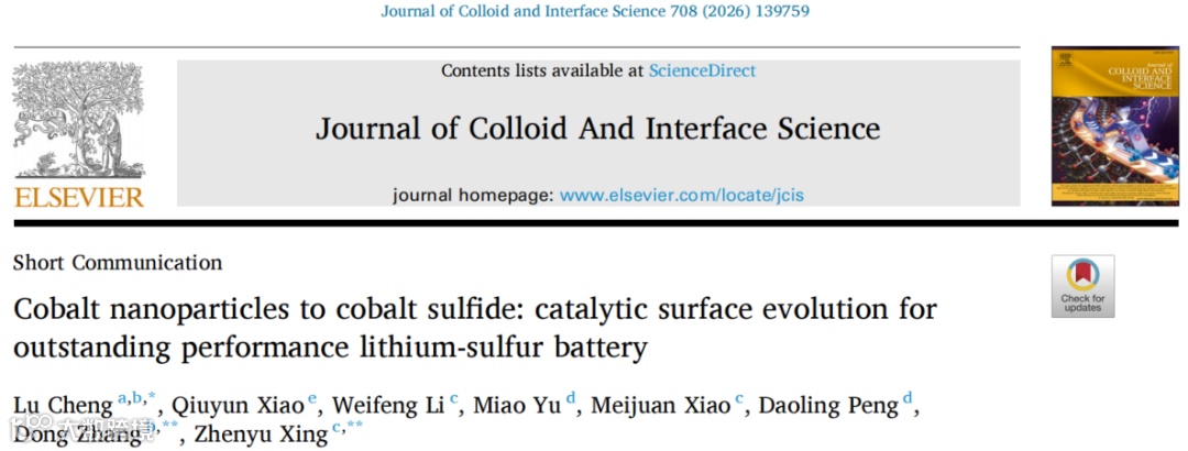 L. Cheng, Q. Xiao, W. Li, M. Yu, M. Xiao, D. Peng, D. Zhang, and Z. Xing, J. Colloid Interface Sci. 2026, 708, 139759.