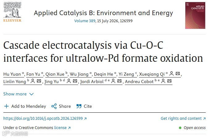 Title: Cascade electrocatalysis via Cu-O-C interfaces for ultralow-Pd formate oxidationPublished in: Applied Catalysis B: Environment and Energy, doi: 10.1016/j.apcatb.2026.126599。