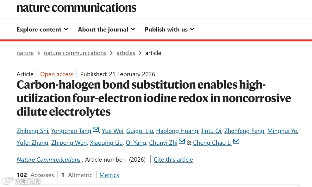 碳-卤键取代路径实现非腐蚀性稀电解液中高利用率的四电子碘氧化还原