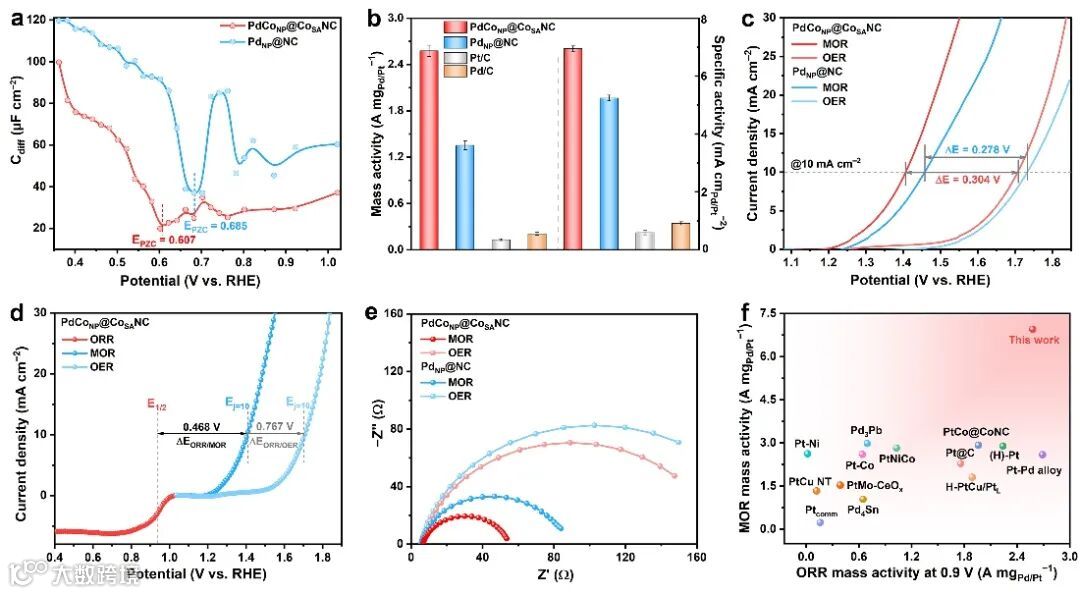 图3. 催化剂的氧还原反应(ORR)和甲醇氧化反应(MOR)活性。