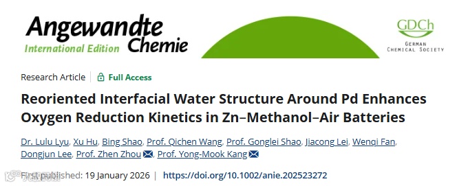 钯界面水结构的定向调控增强锌-甲醇-空气电池的氧还原动力学