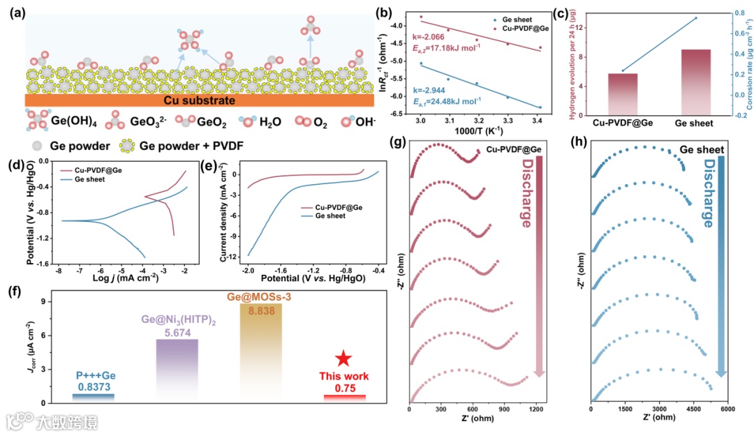 图4. Cu-PVDF@Ge阳极的界面腐蚀行为和反应动力学。