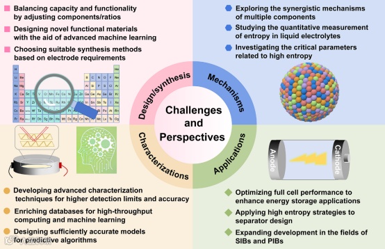 高熵材料在碱金属离子电池中的应用面临多重挑战与机遇。本文就元素/结构单元选择、合成方法选择、高熵机制探索方向、表征技术和理论计算发展、全电池组装以及拓展应用进行了阐述。这项研究有望激发更多科研工作者对高熵碱金属离子电池的开发兴趣,为未来实现商业化应用铺平道路。