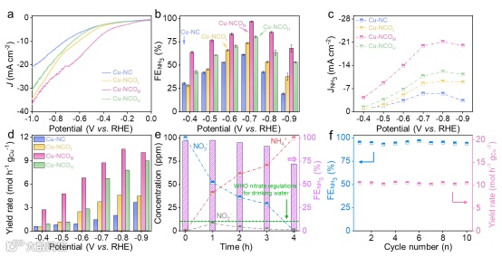 要点三: Cu-NCOx催化剂表现出优秀的电催化NO3RR性能