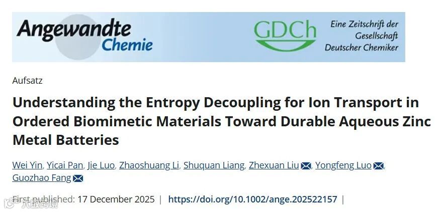 近日,来自中南林业科技大学的刘哲轩,罗勇锋教授与中南大学的方国赵教授合作,在国际知名期刊Angewandte Chemie International Edition上发表题为“Understanding the Entropy Decoupling for Ion Transport in Ordered Biomimetic Materials Toward Durable Aqueous Zinc Metal Batteries”的综述文章。文章的第一作者是中南林业科技大学硕士研究生尹伟。该综述系统总结了熵解耦原理,并揭示了多尺度结构间的相互作用机制。特别聚焦于熵对离子扩散行为的影响规律,以及通过仿生材料实现熵解耦的作用机理。