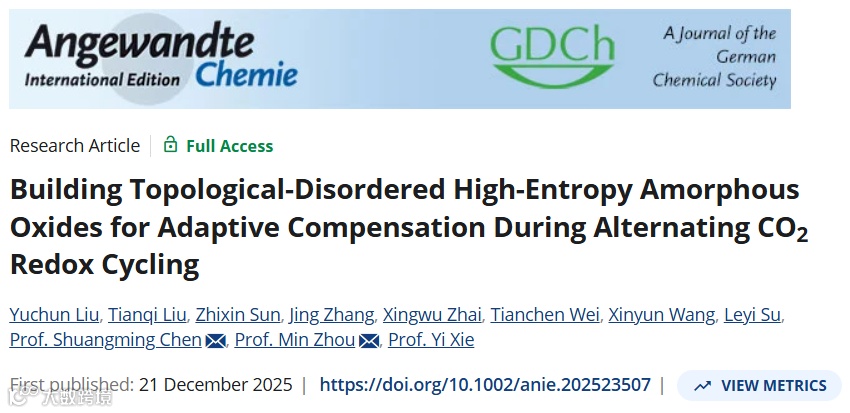 近日,来自中国科学技术大学的周敏教授陈双明教授合作,在国际知名期刊Angewandte Chemie International Edition上发表题为“Building Topological-Disordered High-Entropy Amorphous Oxides for Adaptive Compensation During Alternating CO2 Redox Cycling”的观点文章。该文章提出了一类具有本征自适应特性的高熵非晶氧化物(HEAOs)作为模型系统,通过这种长程拓扑自适应性来重新定义抗疲劳电化学材料的设计原则。