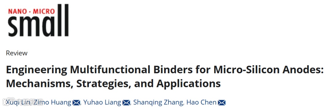 近日,来自广东工业大学陈浩教授、梁宇皓副教授与中南大学黄子默博士合作,在国际知名期刊《small》上发表题为“Engineering Multifunctional Binders for Micro-Silicon Anodes: Mechanisms, Strategies, and Applications”的综述文章。该文章阐述了微米硅负极在循环过程中的结构演化与失效机理,包括:应力集聚、SEI 反复破裂、锂滞留、颗粒粉化、界面失效等。同时汇总了近年来粘结剂工程中的关键策略:增强机械强度、增强界面作用(氢键、离子键、共价键)、提供电子/离子导通网络、构建自愈合结构、构建梯度模量结构、调控并稳定 SEI 薄膜。