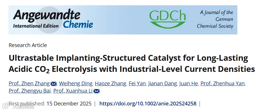 近日,来自西北工业大学的张震教授与李炫华教授,在国际知名期刊Angewandte Chemie International Edition上发表题为“Ultrastable Implanting-Structured Catalyst for Long-Lasting Acidic CO2 Electrolysis with Industrial-Level Current Densities”的文章。该研究发展了一种植入式结构催化剂,通过将活性金属氧化物NPs完全锚定在沸石分子筛晶体内所带来的稳定性增强优势,与金属氧化物-沸石分子筛完全界面接触所提供的强电子MOSI优势相结合(图1d),解决酸性CO2电解的稳定性和选择性难题。
