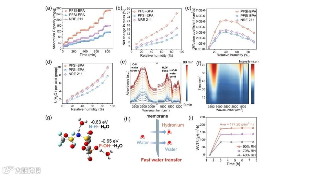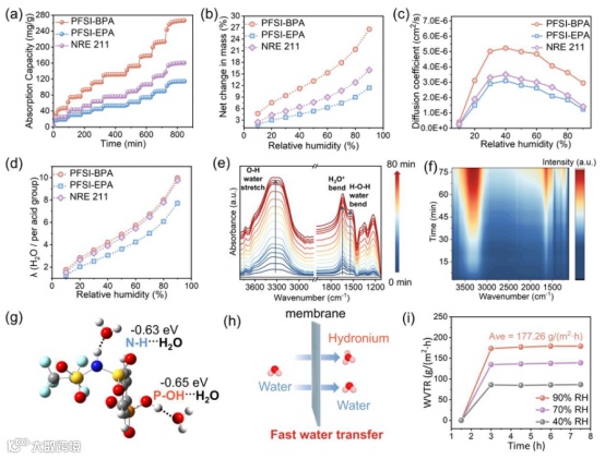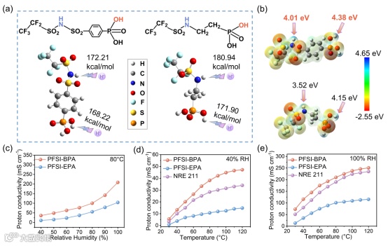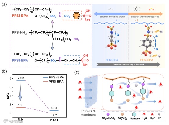 图 1.吸电子效应促进全氟磺酰亚胺-苯基膦酸膜中质子离域