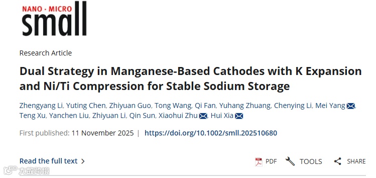 近日,来自南京理工大学的杨梅教授和夏晖教授与南京信息工程大学的朱晓辉博士合作,在国际知名期刊Small上发表题为“Dual-Strategy in Manganese-Based Cathodes with K Expansion and Ni/Ti Compression for Stable Sodium Storage”的研究文章。文章中构建了一种双重策略调控的P2型钠离子电池正极材料P2-K0.7Mn0.8Ni0.1Ti0.1O2(KMNT),通过引入大半径的K+来扩大碱金属层,同时通过Ni/Ti共掺杂来收紧过渡金属层。这种双重策略构建了坚固的K+支柱,永久性地拓宽了Na+扩散通道,同时通过更强的Ni/Ti–O键合来强化Mn–O网络。即使在1.5 V的低截止电位下,KMNT正极在0.1 A g-1的电流密度下仍能表现出124 mAh g-1的可逆比容量,在200次循环后容量保持率为98%,在大电流密度(1 A g-1)下900次循环后仍能保持83%的容量,显著优于传统的锰基正极材料。本文为钠离子电池锰基层状氧化物正极材料设计及发展提供了一种新的方法。