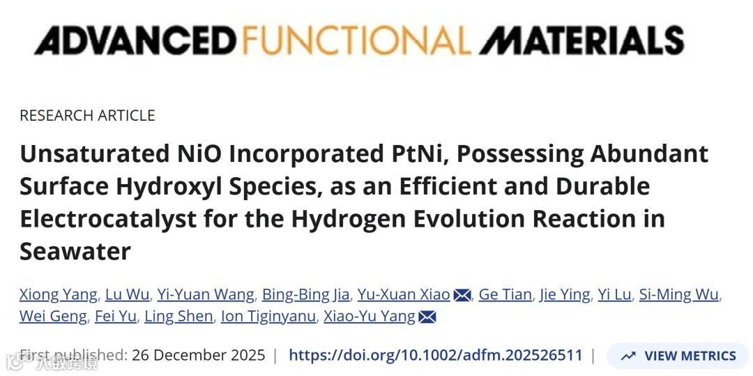 Unsaturated NiO incorporated PtNi, possessing abundant surface hydroxyl species, as an efficient and durable electrocatalyst for the hydrogen evolution reaction in seawater Adv. Funct. Mater., 2025, e26511.