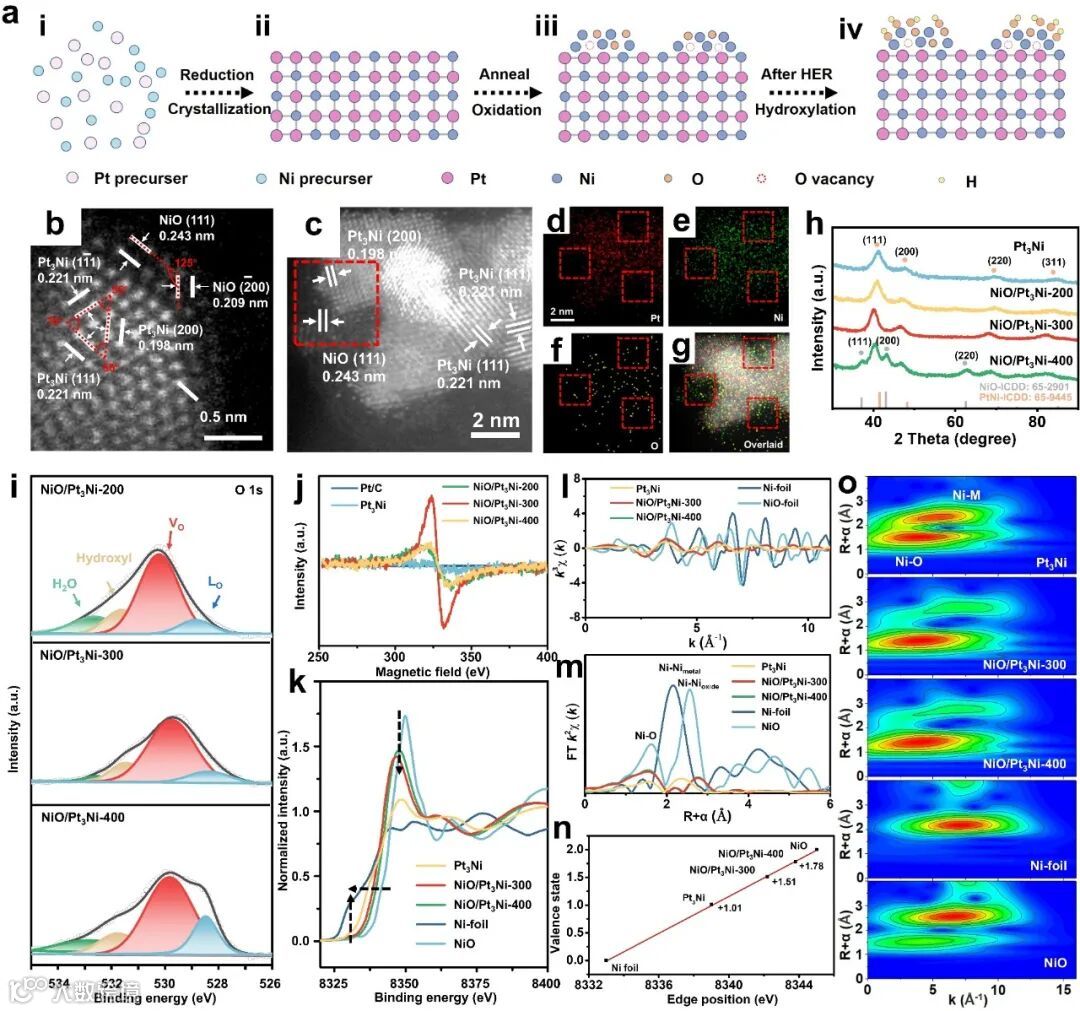 图1. NiO/Pt3Ni-300催化剂的设计合成与结构表征。