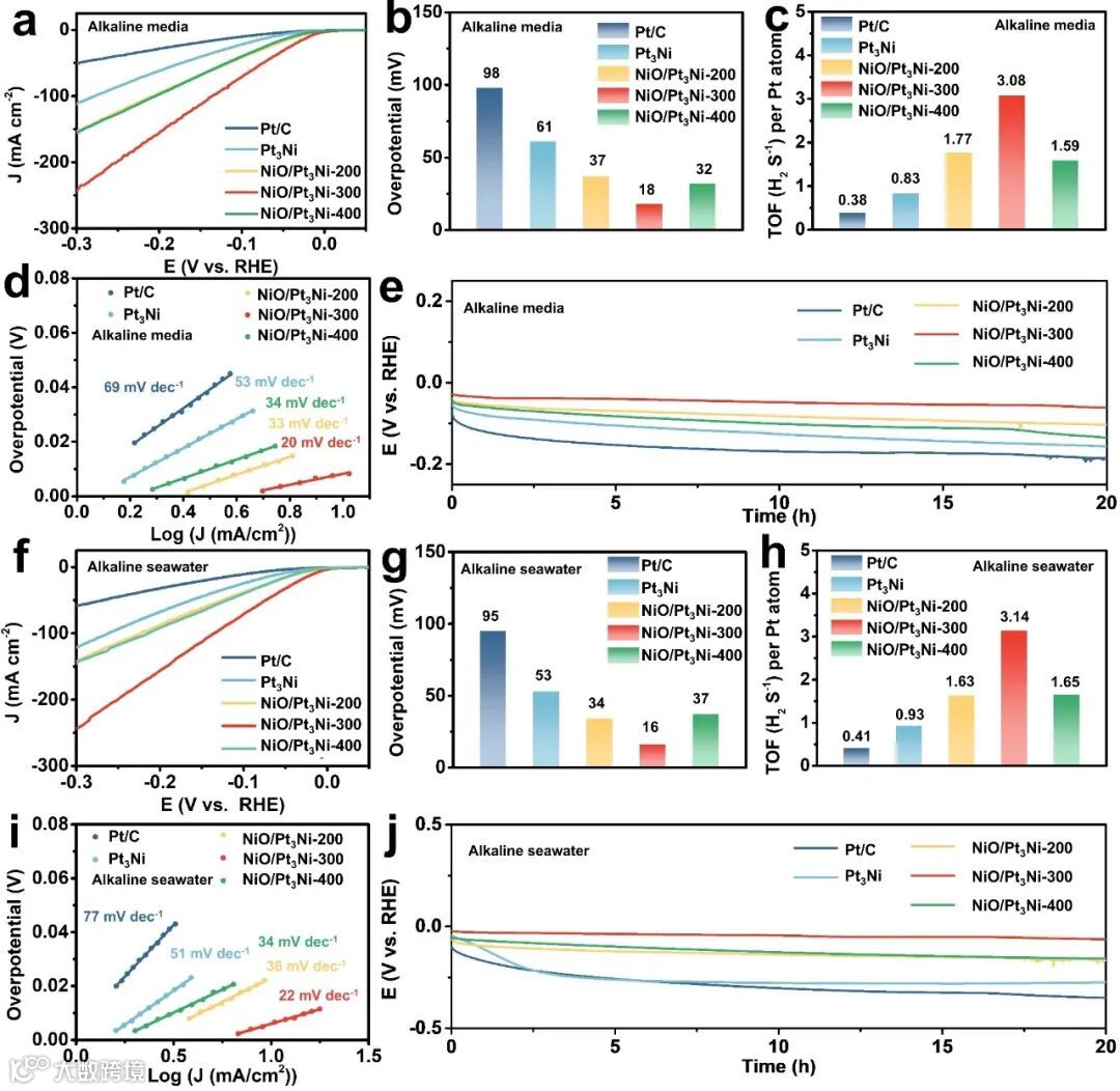 要点二:NiO/Pt3Ni-300催化剂海水产氢性能表征
