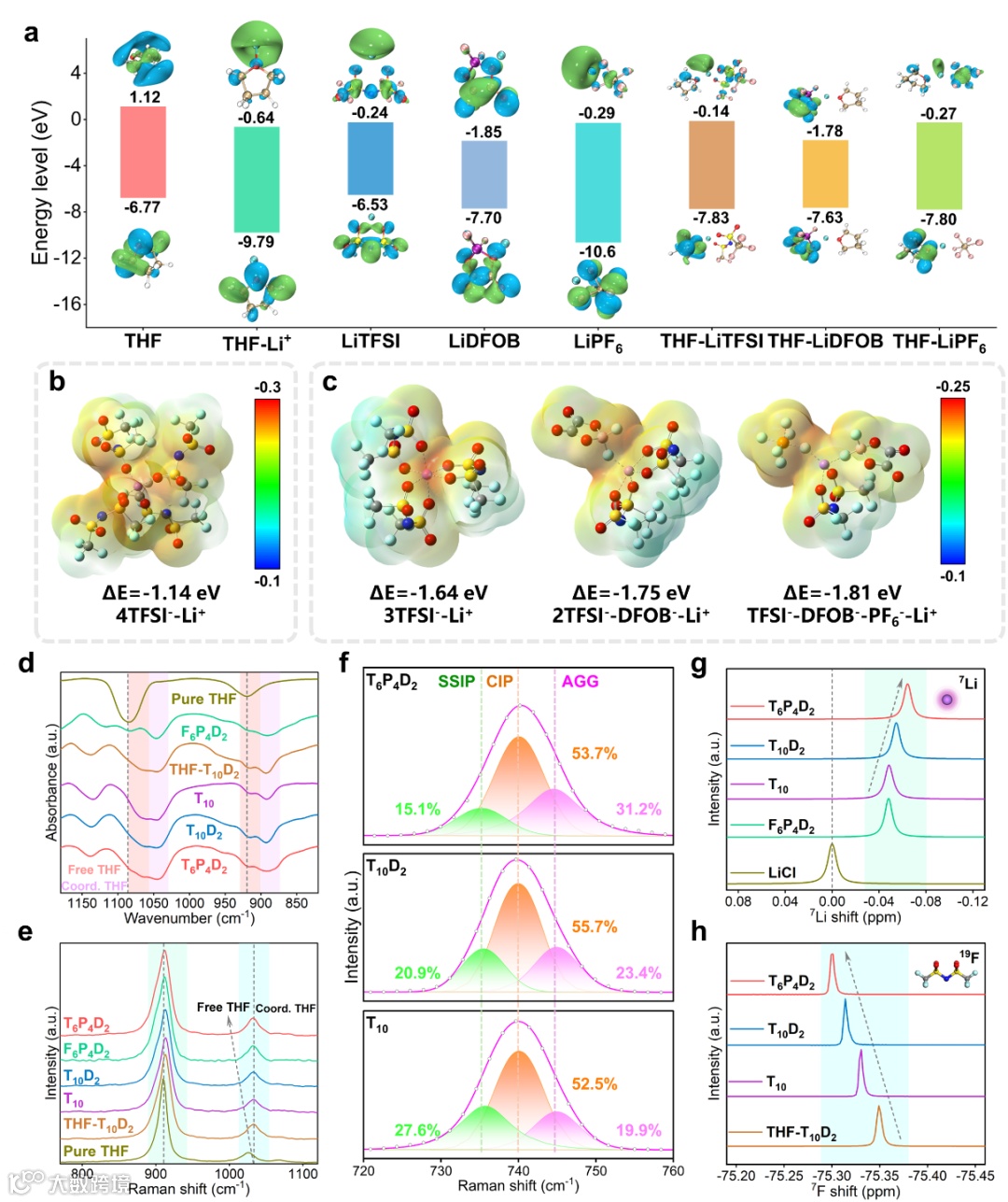 图2. 电解液组分的理论计算与光谱表征